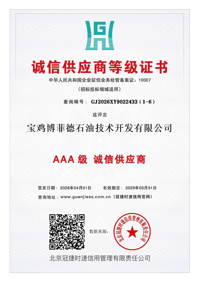 诚信供应商等级证书